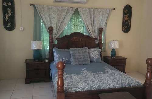 Discover the beauty of Negril from this lovely 1-bedroom building. The cozy bedroom features a comfortable queen bed, perfect for a good night's sleep. Enjoy the convenience of amenities like an iron, hair dryer, and AC. The bathroom is equipped with a shower and hair dryer for your comfort. Our place is equipped for both long or short stays to make your holiday one to remember.