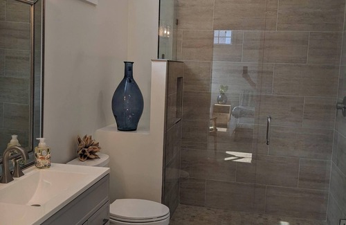 Take it easy at this unique and tranquil getaway. Brand new comfy guesthouse with private boat ramp access to Pages Creek/Intracoastal Waterway and close to area beaches. Well-equipped full kitchen and spacious living room and bedroom. Located in a quiet residential neighborhood with plenty of dining and shopping options nearby.
