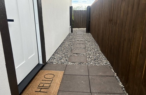 Rental space with private entrance, bedroom full size sleigh bed and hall bath walk-in shower. Work from Home with Hightop Desk and 5G Guest WiFi stay connected. Host-owner occupies the Master portion of the home. Exterior Dusk to Dawn security lighting. Easy walk paver path to the Studio entry door. Guest Car Park in driveway. Your Guest Entry Door code will be provided.