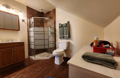 Consider this barn your home away from home while you visit Belton. This delightful property features 2 bedrooms that are up stais, including a king bed and a full bed, perfect for a small group of guests. The full size bed is shaped in a triangle so watch your head. With amenities like a hair dryer, iron, and WiFi, you'll have everything you need for a fantastic stay. The 2 bathrooms come equipped with a shower and more essentials. Feel free to reach out to us during your stay - we're happy to suggest local spots to check out.