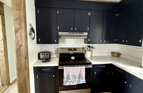 Kitchen: Coffee maker, air fryer, toaster, microwave, hand held mixer, crockpot, full-size fridge, stove/oven, dishware, flatware, bakeware, cooking utensils, trash bags, paper towels, kitchen table, cookware, salt/pepper, herbs/spices, oil, spray oil