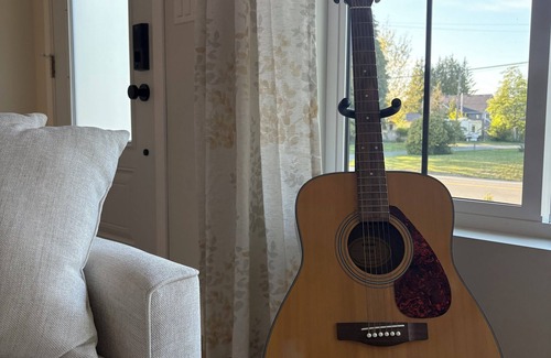 Get ready to relax in this private, 2-bedroom home in Campbell River. This beautiful property features 1 queen bed and 1 double XL bed, a cozy living space, and fully equipped bathroom with tiled walk-in shower. Enjoy west-coast living in a space where everything is brand new. You’ll enjoy the Samsung Frame TV with scrolling art, fully equipped kitchen, new washer and dryer and a guitar is ready to strum! Enjoy your time in Campbell River at our enchanting home.