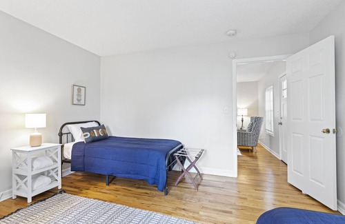 The closet in this room is reserved for our supplies, and is not available. The second bathroom is located off of the hallway, and features a single vanity, toilet, and tub/shower combination.