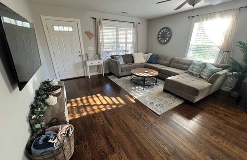 Just 10 minutes from downtown Greenville and 5 minutes from Paris Mountain State Park, this peaceful one-level home sleeps 6 with 3 bedrooms. Enjoy the open living area connecting the kitchen, dining, and living room, perfect for gathering. Relax on the front porch or unwind on the peaceful back porch. Whether exploring vibrant downtown or hiking nearby trails, this cozy home offers the perfect blend of comfort, convenience, and nature.