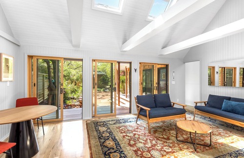 Newly renovated 3 bedroom home in the Pines in a very private setting. The house is arranged around a large outdoor courtyard with a hot tub and fire pit.