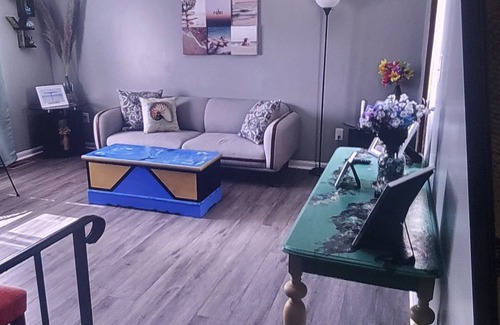 Escape to a delightful 4-bedroom house in Lusby. This marvelous property features 1 twin bed, 1 king bed and 2 queen beds, perfect for a peaceful retreat. With amenities like WiFi, iron, AC, and heating, guests can relax and unwind in comfort. Additionally, there are 2 additional spaces including a cozy sectional with high stool table. We hope you'll enjoy your stay at our house.