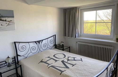 The freshly renovated holiday home min tu Hus is on the dike and the view of the wide North Friesland is indescribable! With its almost 200 m², the house offers space for up to 7/8 people. 1 bedroom is on the ground floor, the remaining 3 in the upper floor. Each of the large bedrooms has its own flat TV, another one is of course in the living room. The large living room with its cozy fireplace invites you to cozy evenings. In the garden there is a grill and various sunny, shady and cozy cookies to enjoy your vacation to the fullest.