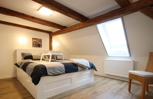 Spacious, freshly renovated and newly furnished flat on the upper floor of a former farmhouse with fireplace and plenty of space in a quiet rural setting near the Plauer See lake. The friendly landlords live on the farm and will provide you with many tips about the beautiful surroundings. The nature park Nossentiner Heide with its extensive forests and quiet forest lakes invites you to wonderful cycling tours or hikes in the green nature. Don't forget your picnic basket and your bathing suit - many natural beaches tempt you to take a dip in the cool water. The climatic health resort of Plau am See is only 8 kilometres away - on a walk through the town you will discover the medieval origins of the town with its small, winding alleys and half-timbered houses. Many restaurants invite you to feast - both on upscale cuisine and hearty Mecklenburg country fare. Included in the rent: all consumption-dependent energy costs, WLAN, laundry package, parking space in front of the property. Activities in the vicinity: A highlight in the summer months is a ride on the trolley - a nature experience for young and old. In Malchow, about 15 km away, there is tobogganing fun for everyone on the 800 m long summer toboggan run with its seven steep curves and six chicanes. Afterwards, the monkey forest awaits your visit: a 1.8-hectare outdoor enclosure provides a natural habitat for the monkeys, which originate from Morocco. Note: Firewood for the first fireside session is included