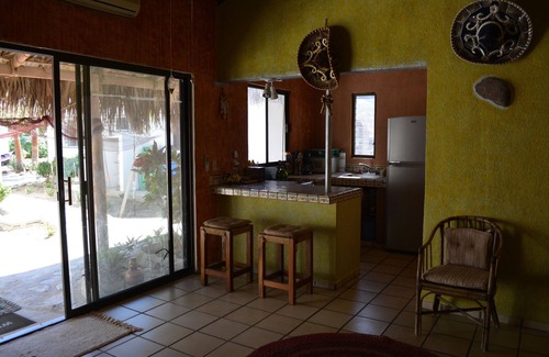 Charming stand alone casita with palm palapa roof. Just renovated last season. 1 bedroom with queen size bed, fully equipped kitchen (fridge, stove, outside BBQ), full bathroom, living room with sofa bed , TV, WiFi, and outside patio. Sleeps 2 . Located right next to Vela windsurfing resort, 2 minute walk to the beach, local markets and restaurants. Storage for gear available. Sport equipment available at little extra cost (kayaks, SUP, mt bikes, ATV). Beautiful private garden.