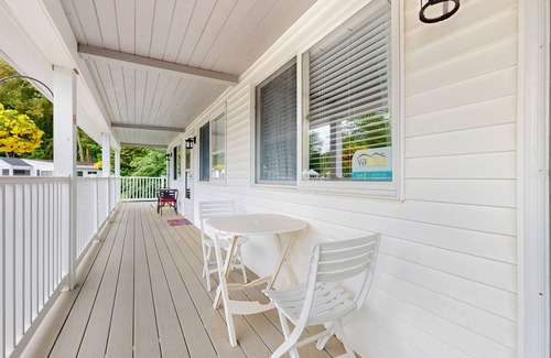 As many as four guests will sleep soundly in the studio-style Lighthouse Getaway. You'll find one queen-size bed in the living space, one futon that unfolds into a second bed, and one full bathroom with a shower off the kitchenette.