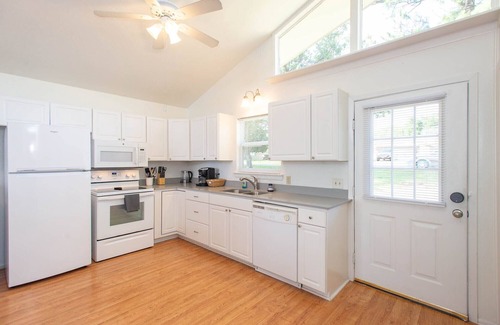 A unique feature of this home is the convenient outdoor kitchen with a gas grill to make outdoor entertaining and eating a breeze! After a delicious barbecue, head down to the fire pit for a great way to watch the sunset with an inviting fire. If you are looking for more active entertainment, take advantage of badminton and croquet that are available for our guests!
