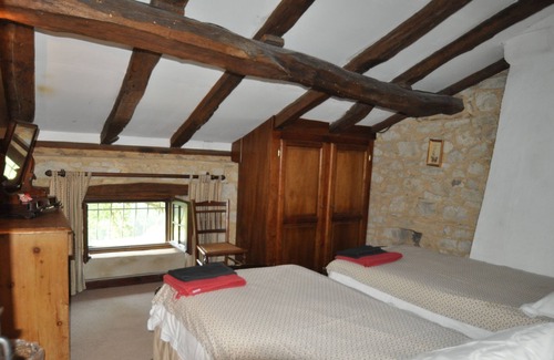 Upstairs was the granary for storing corn and drying tobacco leaves, now tastefully converted, with a wealth of beams, low windows and exposed stonework.