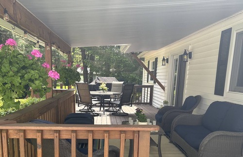 Immaculate single family ranch style home in a beautiful community on Goodyear Lake. This 960 sq. ft. house sits on 1/2 an acre. The large deck in the back is a great place to entertain and relax. The outdoor living space is under cover while the patio table and grill are in an open air space. Backyard is private with a designated bonfire area. Goodyear Lake is merely a 5 minute walk away from this lovely, clean and well maintained home. The inside is comfortably furnished with leather living room furniture, 52" Smart TV and electric fireplace. One bedroom offers a queen size bed with quality linens and 48" Smart TV. Second bedroom is furnished with a double size bed with a 32" Smart TV. Beautiful gourmet kitchen with a round 4 seating table. There is one bathroom that has a tub/shower combo and single sink vanity. Cooperstown All Star Village is 13 miles and Cooperstown Dream Park is 11 miles. There is access to Goodyear Lake for swimming/paddle boarding/canoe/kayak.