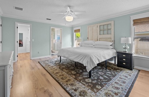 This home is located in Fleming Island, Florida which is a suburb of Jacksonville. The kitchen is fully stocked for your enjoyment and convenience. The dining area features seating for 8 guests. Relax in the living room, play board games, or enjoy your favorite programs on the Roku. Don't forget to bring your login information for your Hulu, Netflix, or Amazon Prime Accounts. There is also a TV in all three bedrooms with a Roku or Fire TV. The primary bedroom features a king size bed and en-suite bathroom. Both guest bedrooms feature a queen size bed. An additional guest could sleep on the couch. Washer and dryer available for your ease. The backyard is quiet, large, and fully fenced with a fire pit and fire wood!