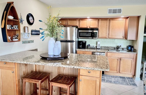 Our cozy retreat was recently updated and furnished with great attention to detail. Four sleep comfortably with a plush queen bed in the bedroom and an Euro Italian leather queen sleeper sofa with supportive high quality foam mattress in the living room. With its fully equipped granite and stainless-steel kitchen, high speed internet, 2 HD Smart TVs, and a separate vanity/tub bath, our condo is perfect for a relaxing romantic getaway, small family beach vacation, while on business, relocating to our beautiful area, or visiting your student at FIT. All windows and the sliding glass door were recently upgraded to energy efficient high impact glass that reduce outside noise levels. Beach towels, chairs, umbrella, and coolers are available. Debit/credit card operated laundry facility is on site.