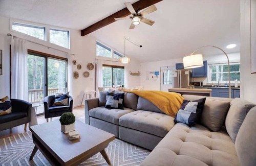 Welcome to Charming Poconos Retreat, your perfect getaway nestled in the serene Bear Creek Estates. This recently renovated, modern, and airy home offers a bright and cheerful ambiance, ideal for families and groups of couples looking to relax and explore the beautiful Poconos.