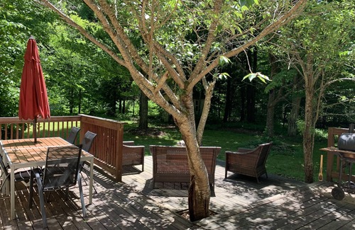 Treat yourself to a private getaway in the southern Catskills! Our light-filled house is designed for entertaining, with a fully-stocked kitchen and a huge deck with a bbq grill in back. There is a rocky creek great for wading just behind the large yard. A five-minute drive takes you to Livingston Manor, the most up-and-coming spot in the Catskills, with first-rate dining, shopping, breweries and outdoor activities. The Willowemoc Creek, known for its world class fly fishing, is even closer.