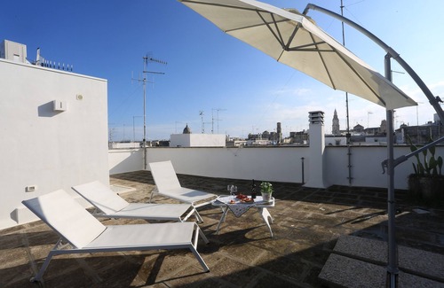 The price is for the whole property. Charming house (true sea view,) in the historic center of Monopoli on the sixteenth century walls, a stone's throw from the sea and the enchanting sandy and rocky coves. The house has a living room, lounge, 2 bedrooms (4/5 beds), 2 bathrooms, equipped kitchen (washing machine, dishwasher, microwave, fridge,) panoramic terraces overlooking the sea (150 sqm), solarium, WiFi connection (fiber) free and unlimited, air conditioning, heating. Tastefully furnished, parquet floor. The residence is available for stays from € 70.00 (discounts for single couple, for cyclists we have a free adjoining room for storing bikes / canoes).(SMOKING NOT ALLOWED) (PREFERIBILEMNTE IN THE MONTHS OF JULY AND AUGUST -CHECK IN SATURDAY-CHEKOUT FRIDAY OR SATURDAY)