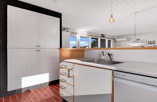This charming cottage, located in a secluded area of Rødhus, offers a peaceful and cozy retreat. Upon entering, you are welcomed by an entrance hall, perfect for storing jackets and shoes. The hallway leads to a bathroom and a versatile bedroom with both bunk beds and a double bed. A staircase to the right leads up to a spacious, light-filled loft with skylights, ideal for additional sleeping space. Further down the hallway is a second bedroom with two single beds. The heart of the cottage features a stylish kitchen/dining area and a cozy living room, complete with a wood-burning stove. Large windows provide natural light, creating a warm and inviting atmosphere. The living room opens up to a beautiful screened terrace and garden, perfect for relaxing or enjoying meals outdoors in complete privacy. The property is non-smoking, and youth groups are not allowed. Rødhus is known for its natural beauty and is close to many attractions, including Rødhus Beach, perfect for a day by the sea, and the stunning nature reserves and hiking trails nearby. The cottage is an ideal base for exploring the area’s picturesque landscapes, offering a peaceful getaway with modern comforts. Be sure to order any linen packages when booking to avoid additional administration fees.