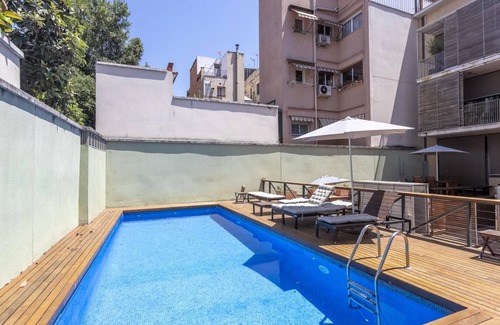 Yes, this la Vila de Gracia apartment has a swimming pool. Check the Facility Overview section for details about the pool and other available facilities.