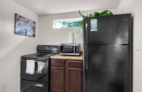Stay comfortably in Pensacola at this phenomenal 1-bedroom villa. This clean, cozy space features a queen bed, perfect for a good night's sleep. Enjoy the convenience of a fully equipped kitchen and a charming living room with space for an air mattress, provided at no charge. With amenities like WiFi, AC, and a washing machine, guests will feel right at home. Step into the shower in the modern bathroom and get ready for a day of exploring. Fall in love with Pensacola and enjoy the magic it has to offer.
