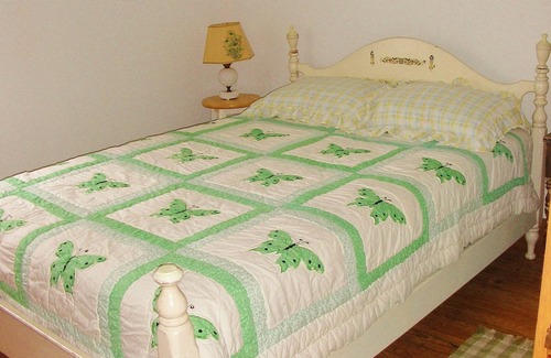 The home's three bedrooms are on the second floor and are charmingly decorated. There are two twin beds in one ,a double bed in another and a queen bed in the master. All linens, blankets, pillows and towels are provided. There is also a full bath (tub and shower) on this floor.