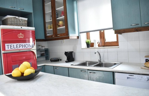 The air-conditioned holiday home at Raeti Cretan Guesthouse offers 2 cozy bedrooms, a spacious living room, and a fully equipped kitchen with a refrigerator, micro oven, Nespresso coffee machine etc.