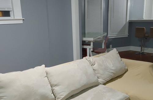 Neighborhood is very peaceful and close to shopping mall wawa etc. Its warm bright and very neat. Second toilet its in the basement.