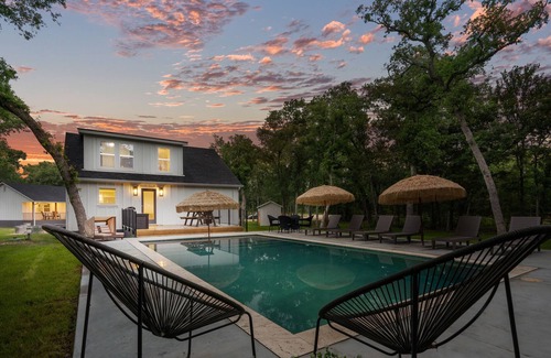 This unique property offers a welcoming getaway, complete with adorable, rescue animals, and brand-new interiors! Located on four acres and home to a petting zoo, this retreat is both private and memorable. When you aren't saying hello to the mini donkeys, sheep, and goats, take an invigorating dip into the newly-constructed, private pool! Or, fire up the grill and host a sweet summer barbecue.