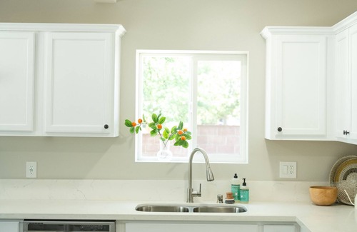 A sweet and cheerful space that feels like home. Thoughtfully designed, with amenities to make your stay as easy + comfortable as possible. Three spacious bedrooms, and huge open floorplan kitchen, dining and living space. Centrally located, easy freeway access, minutes to Downtown Riverside, CBU + UCR.