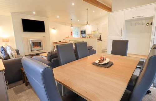 Cherry Tree Lodge is a superb lodge resting in the White Cross Bay holiday park in Windermere, Cumbria. Hosting three bedrooms including a king-size with an en-suite shower room, a king-size and a twin, along with a bathroom, this property can sleep up to six guests. There is also an open-plan living space with a kitchen, dining area and sitting area with an electric fire. Outside, there is off-road parking for one car and decking with furniture. Cherry Tree Lodge is a lovely base for exploring the delights of the Lake District.