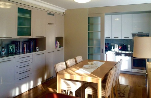 My apartment has 2 rooms and 1 living room with an open/separable kitchen and a garden. One of the bedrooms is closed to guest access. The main bedroom has a double bed of size 160cm X 200cm. I keep one side of the wardrobe (this section is 100cm wide with 5 shelves and long hanging section) in the bedroom available for your use with many hangers. The bathroom has a spacious shower cabin where 2 people can have shower at the same time. This is the flat that I live in, so you will find all the practical items you may need and I would like my guests to show special attention to keeping the place proper during their stay, since I will be coming back to live after they leave:) The building has a service man if you want to order things for the mornings. My friends enjoy my flat very much and I am sure you will also enjoy the daylight and the calmness of the place.