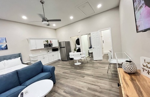 Nestled in Clearwater, this delightful studio offers guests a lovely stylish studio, perfectly situated just minutes away from PIE Airport. This charming retreat is ideal for both leisure travelers and business professionals seeking comfort and convenience. With modern amenities and a spacious atmosphere (550sq ft with 12 ft ceiling), you'll feel extra comfortable during your stay. Studio is with a comfortable queen bed. The bathroom is equipped with a hair dryer, bidet, and shower for a pleasant stay. With amenities like WiFi, a washing machine, AC, heating, and an iron, guests can relax and unwind in this enjoyable space.
