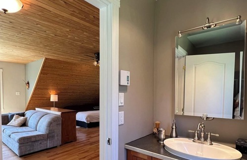 You'll find water sports equipment on site at this pet-friendly chalet. With convenient onsite parking, you'll be ready to make the 7-minute drive to Connecticut River or the 32-minute drive to Mont-Mégantic National Park.