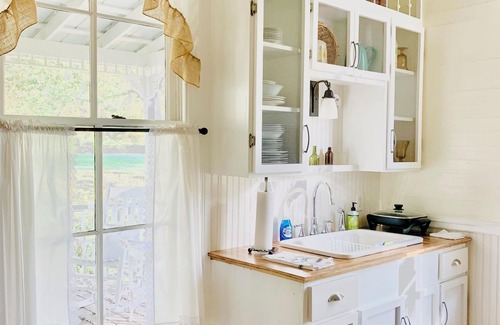 This is more than just a place to stay; it's an invitation to experience the true essence of a one-of-a-kind cottage that envelops you with peace, romance, and charm. Guests return time and again to unwind, explore the lovely countryside, and thrive in the small town vibes.