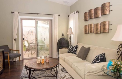 The architecture at Encanto is influenced by the California bungalows of the 1920s. There a community pool on site and on-street parking (no parking permit required).