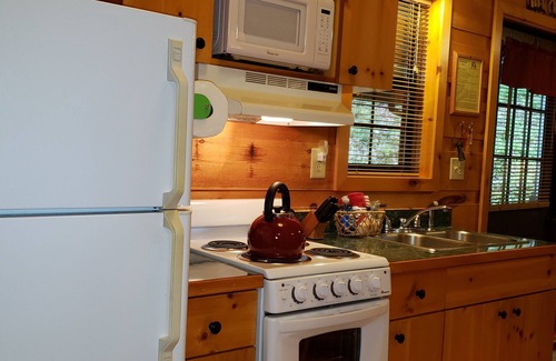 This is one of two log frame cabins located in Haywood County in a private, wooded setting. Great for a couple or solo traveler. If traveling with family/friends and prefer separate accommodations, these cabins are perfect for your group. Each cabin offers you the opportunity to enjoy the peace and quiet of woods while being conveniently located 3 miles to the charming town of Waynesville, NC, which offers unique shopping, a wide variety of restaurants, breweries, and seasonal festivals. Nearby Asheville, Maggie Valley, Cherokee, and Smokey Mountain National Park offer endless activities.