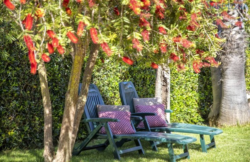 This elegant villa situated in a prestigious setting on the outskirts of Alghero offers our guests a large enclosed garden full of tall pine trees.
