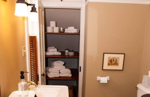 We offer a Sonos Music System, Wifi, Streaming Services, and many books to curl up with. There is a pool table, air hockey, foosball, and darts in the lower level, a fire pit in the front yard with Adirondack chairs for 10, and a grill and griddle in the outdoor eating area. We provide 2 sets of fluffy towels per guest, and a supply of laundry pods and dryer sheets for our HE full-sized washer and dryer, located on the second floor. Enjoy shampoo, conditioner, and body wash in each shower dispenser for ease and convenience. Upon your arrival, you will have a customized code for the keyless check in, a thorough guide book, instructions for all of the technology and contact information to help make your stay at Farm 1849 seamless.
