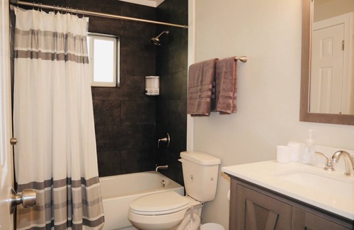 Freshly remodeled nice size kitchen with stainless steel appliances Large dining room table comfy sofa bed we also added board games to entertain our guest as well as complementary bottle water wine and coffee