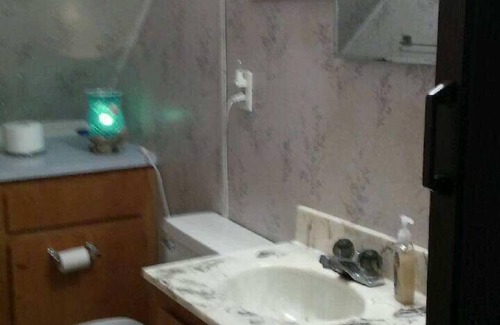 Upstairs loft is divided by a bathroom and a stairwell, one side has two twins and the other side has a queen. Sliding glass door and balcony with lake view. Bathroom is 1/2 bath.