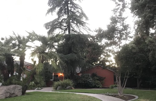 Situated right in the heart of California easy access to the 99Freeway, this property is a day trip to the Giant Sequoias, lakes, Outlet Mall, golf course. It's a nice place to relax whether the central valley is your destination or if you are headed North or South. We are about the same distance from San Francisco and Los Angeles ( both approximately 4 hours). The studio features a pet friendly and safe atmosphere. With an acre to enjoy there is a pool, spa, horse shoe pit, basketball court, barbecue and fire pits. Inside the cottage there is a kitchen with counters made by husband, Kent, out of old growth heart redwood. The main room has a vaulted ceiling which all began because we have my dad's wagon wheel light that he retrieved from an old burnt down local hot spot bar. There are charging stations for your electronics, a comfortable king sized bed, and smart TV's. WiFi is also included. When traveling we find that a lot of places don't allow pets so that's why we are pet friendly. There is a gated dog run with water fall, fire hydrant, Shade and grass and if your dogs and ours get along ( we have 2 Jack Russell Terriers and 1 small terrier mix) They are welcome to go in "The Big Back Yard" as our dogs refer to it :) I do have a comfortable queen air bed and a single fold up bed if you need.