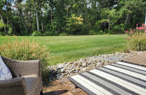 The home offers amenities above and beyond your typical vacation rental: recreation equipment (bikes, tennis, pickleball and beach gear etc), electric vehicle charger, gaming system, air hockey and more. The home is wheelchair accessible, with a ramp available if needed to roll up the two small steps from the driveway. The location on a quiet cul-de-sac offers views of the forest, pond and expansive yard, and is just a short walk to the clubhouse and pool.
