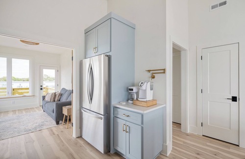 Construction just completed in December on this beautiful coastal cottage which boasts 12-foot tall vaulted ceilings and an open floor plan. Soak in the sunrise with a cup of coffee on the front porch. Then wind down with a glass of wine while you watch the breath-taking sunset view from the back porch. Two large covered parking bays.