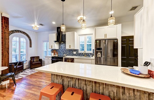 Sip, soak, and stay in style at Cocktails & Cacti—a luxury Spanish-style villa in Phoenix's Historic District. Perfect for groups, this home features 4 bedrooms—each with its own en-suite—plus a detached casita, an additional half bath, and a pool bath for outdoor convenience.