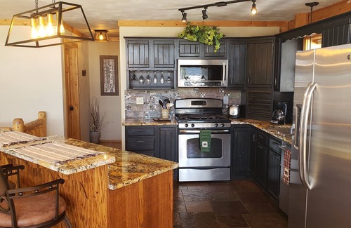 Our wood stove will keep you toasty on those chilly Colorado nights. A large 60" HD satellite-fed television with Blu-Ray DVD player, surround-sound system and WIFI are available. An audio cable is available for your music through the outside speakers over the hot tub and deck. Another Blu-Ray player is in the King bedroom for that TV (bring movies). We do have cards, books, and various board games to play during your stay. If there is not an outdoor fire and smoking ban, you may use the outdoor oversized campfire pit (has a cooking grate in addition to our large gas grill).