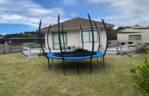 Fully fenced, child friendly property. Mum and Dad sit back and relax, plenty of outside yard for the kids to run around, a trampoline to burn all that extra energy. Great indoor outdoor flow. 3 min walk to the beautiful Cooks Beach, ten minutes to the dairy and local restaurants. 3 double bedrooms, master with an ensuite, kids room queen bed with king single bunk.