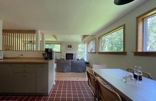 This stylish cabin is friends or family-vacation ready! 2.5 hours from NYC. Cozy up around the wood-burning stove, enjoy nature through the panoramic windows, make s'mores overlooking the wooded banks of the Ten Mile River, or share a home-cooked meal on the candle-lit porch. If you're in the mood to explore, a 5 minute drive to downtown Narrowsburg is the perfect start to experience all that the Catskills have to offer. If you like to hike, shop, eat, relax, or all - Upstate is calling!