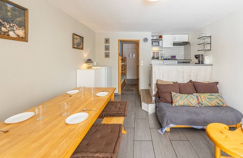 Attractive 29sqm studio for 4 people with south-facing balcony, close to the slopes and shops.