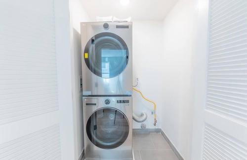 Each bathroom is equipped with modern fixtures, a bathtub and shower combo, and essential amenities like hair dryers. The home's thoughtful features like air conditioning, heating, high-speed WiFi, washer, and iron ensure you have all the comforts of home, and more.